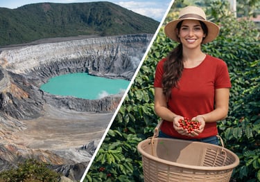Explora el impresionante cráter y la laguna turquesa del Volcán Poás, luego visita una plantación de café tradicional para aprender el arte del café costarricense y disfrutar de una degustación fresca. Naturaleza, cultura y sabor en un tour inolvidable..