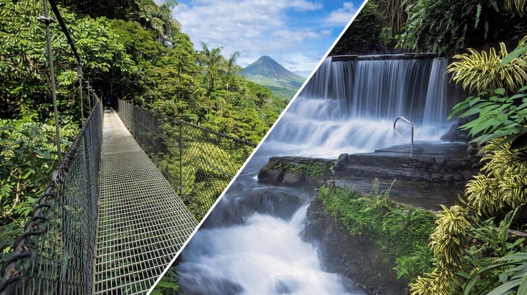Emprende una aventura inolvidable, caminando por selvas tropicales en puentes colgantes y relajándote en reconfortantes aguas termales naturales, rodeado de impresionantes paisajes volcánicos.