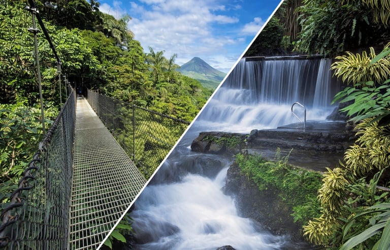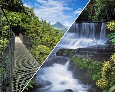 Nuestra primera parada será un delicioso almuerzo típico costarricense en La Fortuna, donde podrás saborear sabores frescos y locales en un restaurante encantador. Después, prepárate para explorar el famoso Parque de Puentes Colgantes Mistico Arenal. Este parque único ofrece una serie de puentes colgantes que te llevan a través de las copas de los árboles, brindando una vista cercana de la selva y panorámicas impresionantes del Volcán Arenal. Durante el recorrido, mantén los ojos abiertos para observar vida silvestre como monos, tucanes y ranas coloridas.